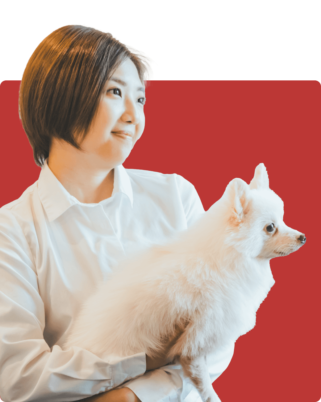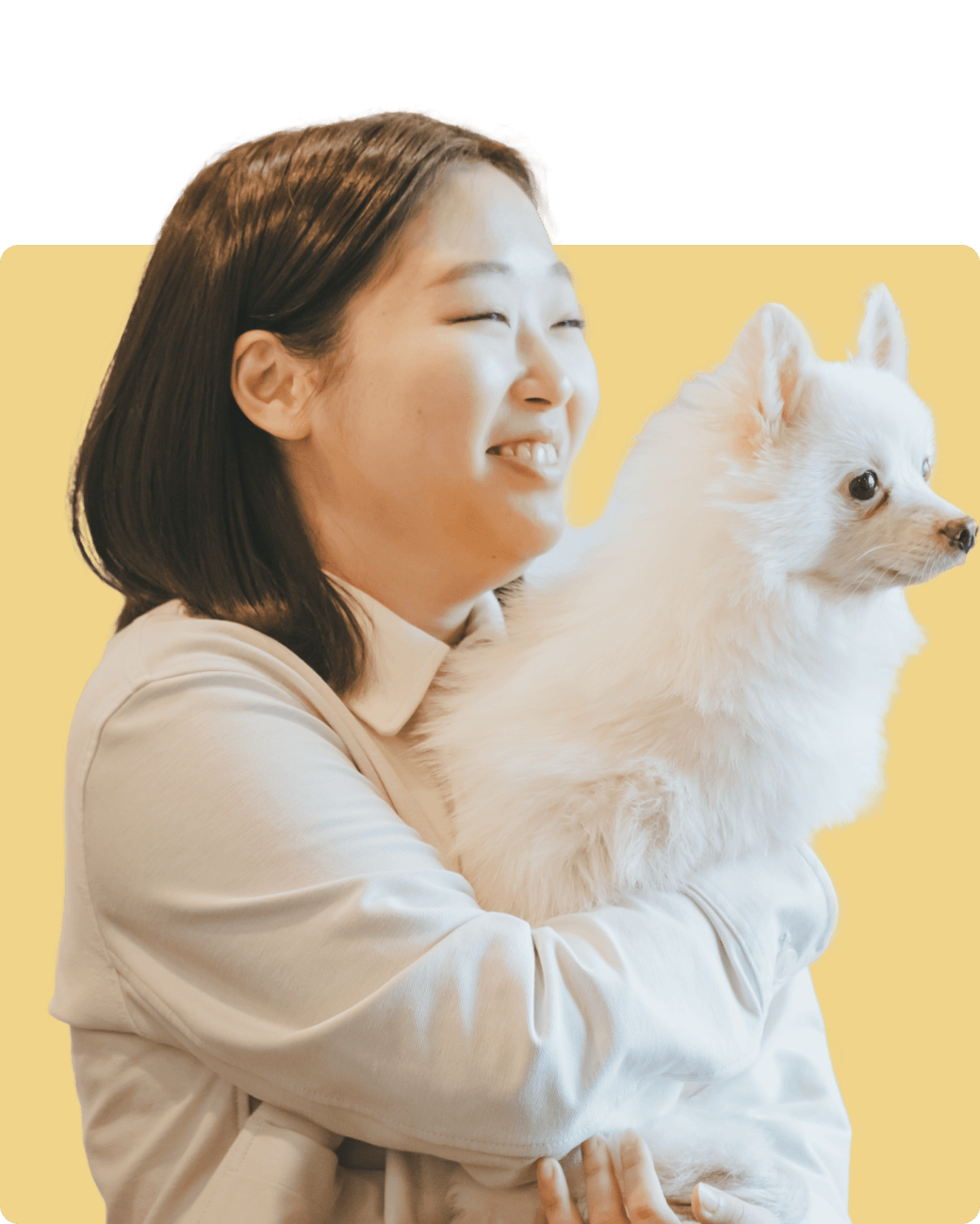 私がやりがいを感じるのは、大好きなわんちゃん・ねこちゃんのことを常に想い、ペットと人の豊かな共生社会を目指し、双方がより幸せに暮らせるような商品を考えているときです。どのような商品がペットと飼い主様の架け橋になれるか日々考えています。